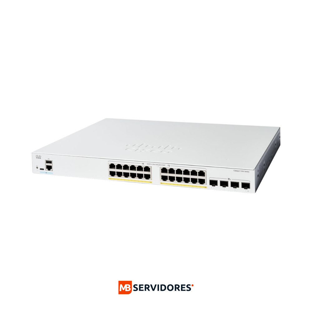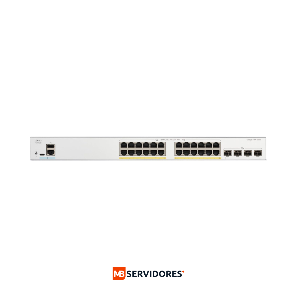 Switch Cisco Catalyst 1300 24x PoE+ Gigabit + 4x SFP, 375W, 128 Gbit/s, 16K entradas, Administrable | C1300-24FP-4X